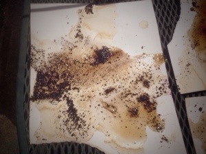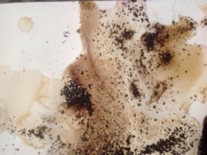 see below. I took wet wc paper outside barefoot and dumped espresso grounds on it. Then I added some coffee with snow to hold the edges down. They are drying in the sun. Title of whatever happens next: the medium is the message, with thanks to Marshall McLuhan