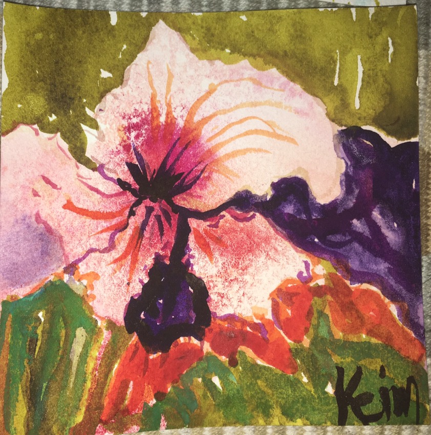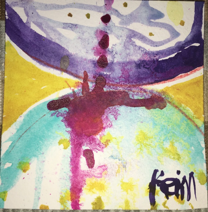I am happy to have donated five 4″ by 4″ inch watercolors to the Just Add Water exhibit at the Kirkland Art Gallery in tiny Clinton, NY. The hook for me was Golden QoR watercolors. Participating artists were given QoR sample packs and paper. Great fun to be splashing and flinging on small sheets. Thanks to Linda Bigness for inviting me.