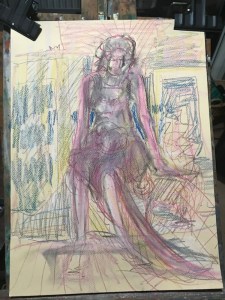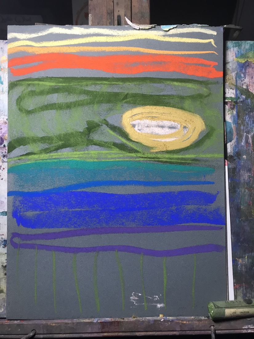 I don’t know who’s winning in this one. Sennelier pastel on Sennelier LaCarte. 12 by 16. Below is day one.