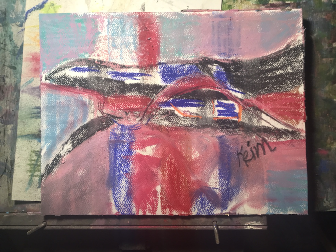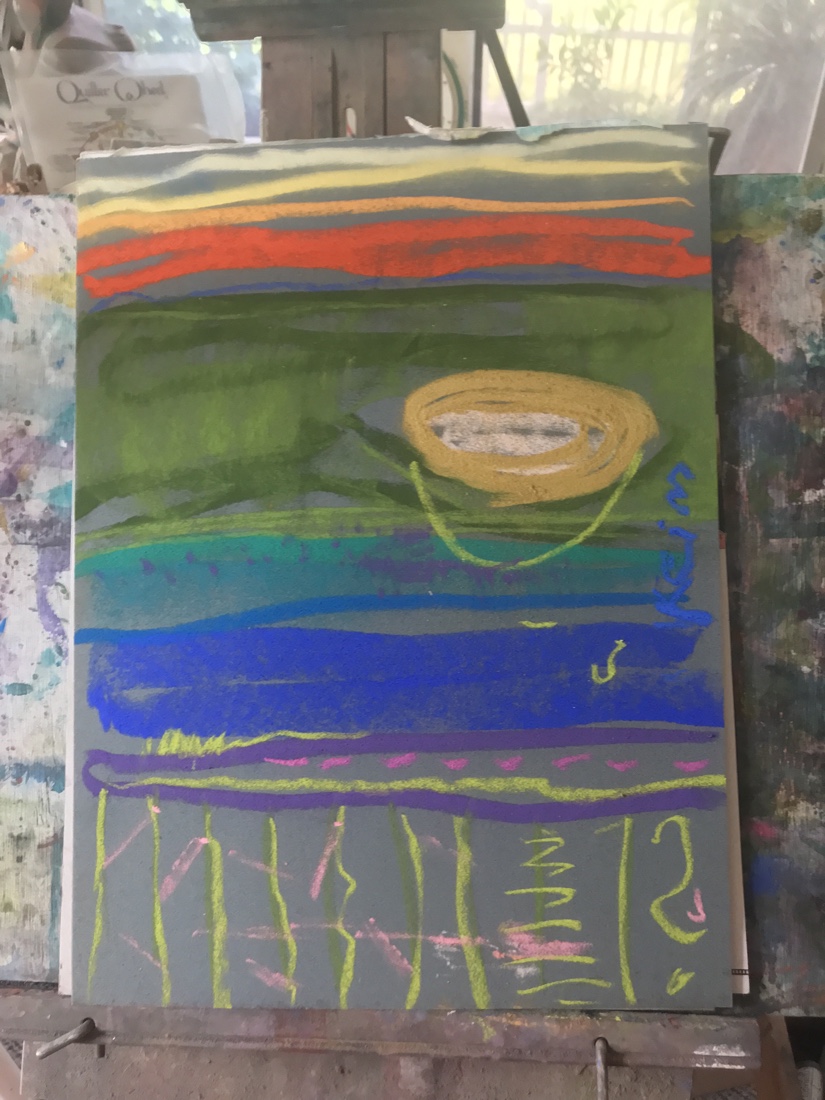 So I finally got over myself and painted. This is “Sweet cheeks at the beach,” pastel on half sheet of lacarte. No idea what happens next.