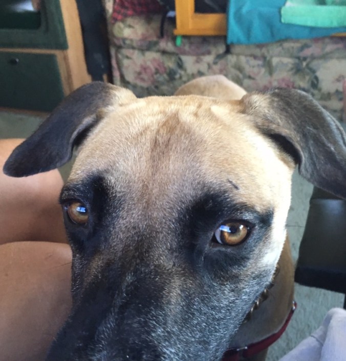 This week has been full of adventure: a dead Jeep (being repaired); our first RV trip with Charlie (below) our beloved rescue dog. Charlie is almost as hardheaded as James Michael Pensinger, my first and now last sweetheart.