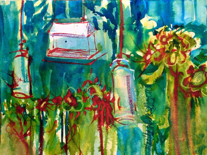 I have given up on Facebook. Too much time. Too yucky sometimes. Twitter and G+ I will keep. Here’s a little WC sketch on paper I did not do well with, but I like the sketch.