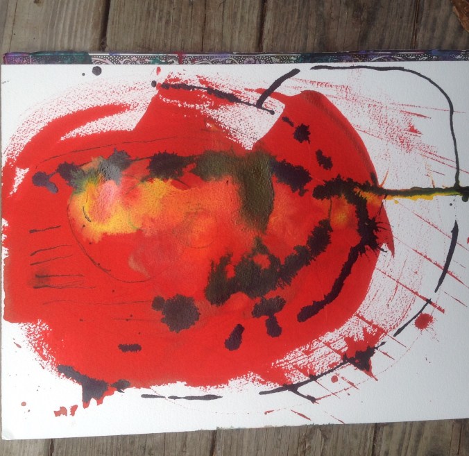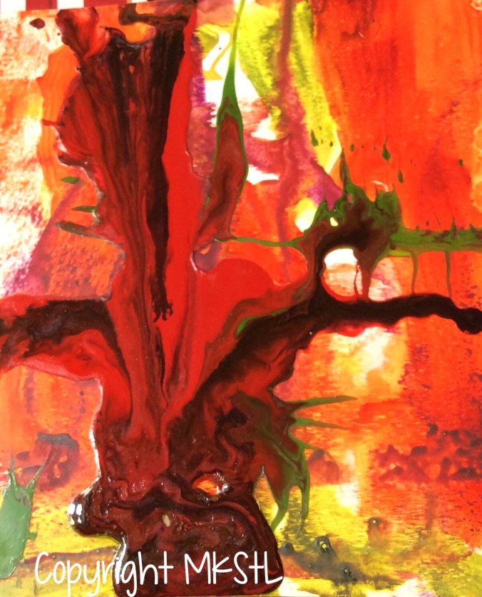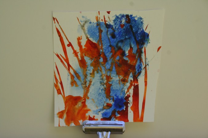 the Tuesday regulars. This one is the result of an ink spill and some paint throwing. I have no idea how to finish it. Would love comments and suggestions