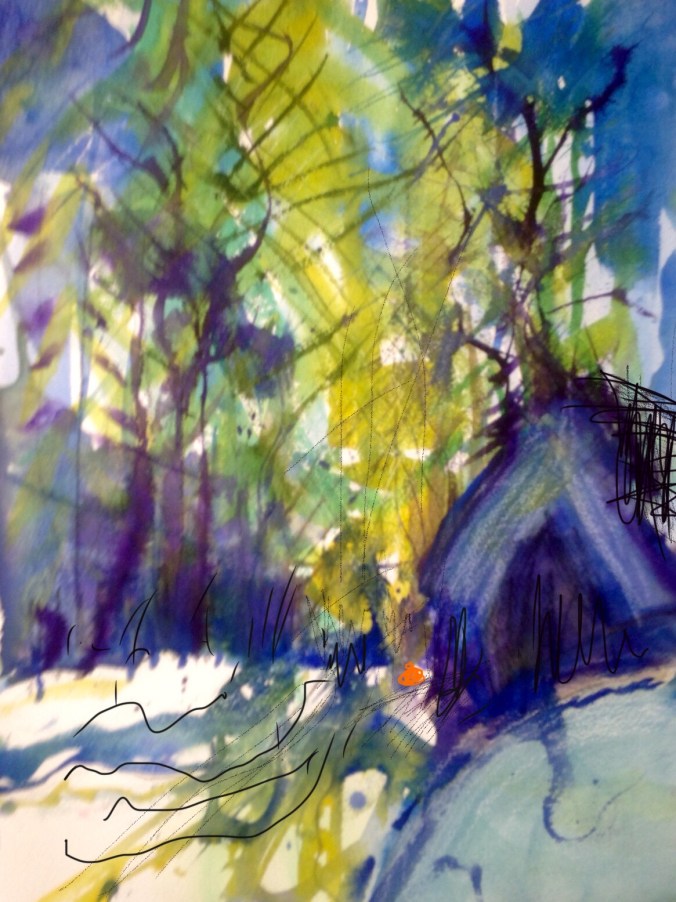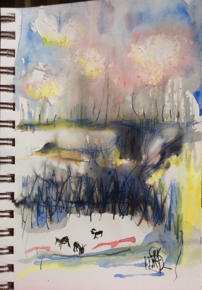 Watercolour and pencil in my Saunders Waterford (rough) sketchbook, 28 x 38 cm