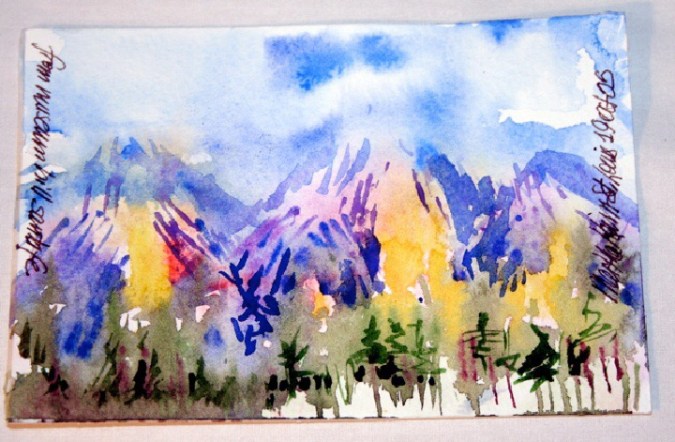 Here’s a postcard I painted in Santa Fe. The original was lost. The skies are wonderful out there